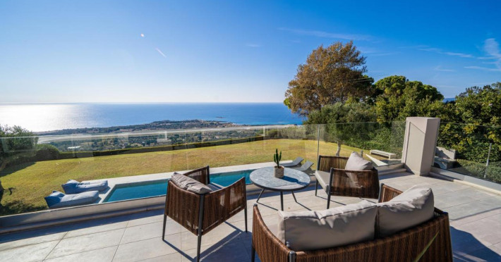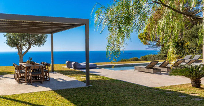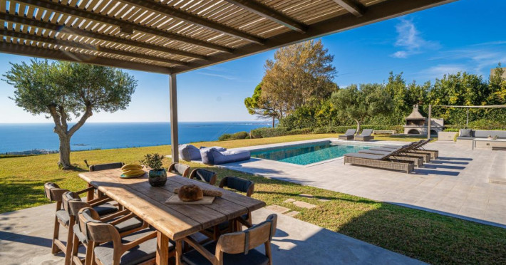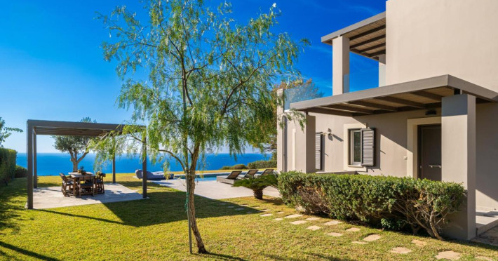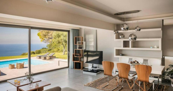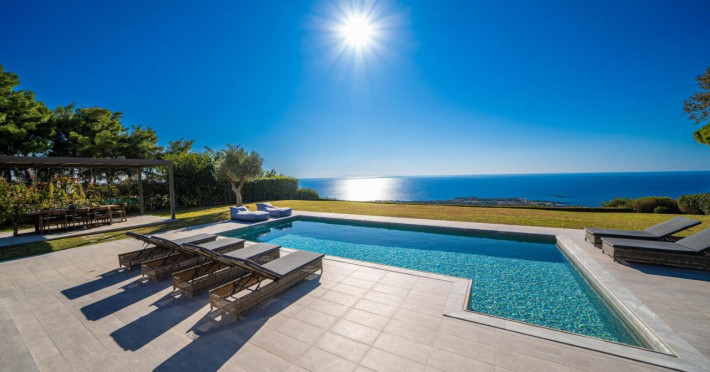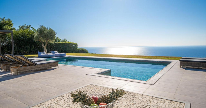 Grande Azzurro. Seldom does a property come onto the luxury vacation rental market which almost defies descriptionGrande Azzurro is such a property. Every single superlative you can ever think of applies to this incredible property and should you be lucky enough to enjoy a stay at Grande Azzurro, you will immediately realise that even the amazing photographs do not fully do it justice it really is THAT special. Located on the outskirts of Lakithra Village, in the Livathos region of Kefalonia, this luxury residence is a perfect base for the discerning traveler, looking to explore everything the island has to offer its visitors. Set in its own large acre plot, Grande Azzurro is modern amp; minimalistic in design and can be honestly described as having the most breathtaking panoramic views of pretty much anywhere on the island and from every single aspect of the property. The extensive private grounds are fully landscaped and beautifully manicured all around, with the feature lawn area housing the patios, pool area, Al Fresco dining pergola, large external kitchen/BBQ area amp; an amazing more casual seating area: simply perfect for those mid-morning coffees and early evening cocktails alike. From every single area of the garden, the clear Blue Azure of the Ionian Sea is sure to dazzle and hypnotize in equal measures, as you sit or lie and just immerse yourself in these mesmerizing views.Datorita dinamicitatii domeniului disponibilitatea ofertelor se modifica de la un moment la altul. De aceea ofertele sunt valabile in limita locurilor disponibile. Agentia nu este responsabila pentru eventualele neconcordante care pot aparea intre informatiile privind tarifele si alte detalii din site si informatiile primite in agentie. In aceste cazuri vor avea prioritate, intotdeauna, informatiile primite in agentie.