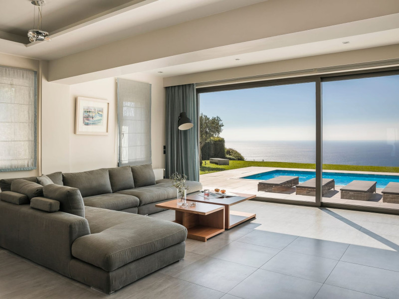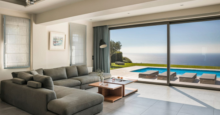 Located on the outskirts of Lakithra Village, in the Livathos region of Kefalonia, this luxury residence is a perfect base for the discerning traveler, looking to explore everything the island has to offer its visitors. Set in its own large ½ acre plot, Grande Azzurro is modern & minimalistic in design and can be honestly described as having the most breathtaking panoramic views of pretty much anywhere on the island and from every single aspect of the property. The extensive private grounds are fully landscaped and beautifully manicured all around, with the feature lawn area housing the patios, pool area, Al Fresco dining pergola, large external kitchen/BBQ area & an amazing more casual seating area: simply perfect for those mid-morning coffees and early evening cocktails alike. From every single area of the garden, the clear Blue Azure of the Ionian Sea is sure to dazzle and hypnotize in equal measures, as you sit or lie and just immerse yourself in these mesmerizing views. Evening time at Grande Azzurro delivers another yet another gem, in the form of the most breathtaking sunsets you are ever likely to experience anywhere. There is a large parking area and the residence is accessed via an electronically controlled stylish entrance gate. Internally, Grande Azzurro is just as impressive, with the huge modern lounge & dining areas benefitting of an almost full-width panoramic sliding window, which has the wonderful effect of giving a seamless transition from the internal spaces out into the garden & patio/pool areas, all whilst continuously being dominated by those truly incredible views. Modern architecture abounds within and can be seen everywhere you look in this wonderful property, with the chic up-market finishes & furnishings, together with the Italian-designed kitchen/breakfast area, all contributing to a truly stunning ground floor space. This floor also houses a double bedroom to the rear, served by an ultra-modern bathroom and ample storage. The feature staircase leads to 2 further bedrooms on the first floor, each again with modern storage solutions and served by the master bathroom facility. Both the master double bedroom and the twin-bedded room also lead out onto the spacious 1st floor balcony, again enjoying the unhindered panoramic sea views with the help of the surrounding feature glass balustrade. The lower floor can access by the main internal staircase or via its own separate entrance and houses a self-contained apartment with large living area, modern kitchen and separate bathroom facilities. The apartment is available in conjunction with the main villa for larger parties of guests, allowing an overall occupancy of 8 people in total style & comfort. If you are seeking something much more from a vacation rental property, then you need not look any further, because Grande Azzurro is the perfect haven for those discerning travelers who expect only the very best in terms of luxury accommodation & design concepts. Coupled with that incredible Ionian vista, we simply cannot praise this remarkable residence highly enough… please enquire now and become one of the very first guests to enjoy a truly exceptional vacation experience. *Grande Azzurro will also be available for exclusive private functions and should you be looking for that special & truly unique wedding venue, then please enquire further for details of our wedding packages.Datorita dinamicitatii domeniului disponibilitatea ofertelor se modifica de la un moment la altul. De aceea ofertele sunt valabile in limita locurilor disponibile. Agentia nu este responsabila pentru eventualele neconcordante care pot aparea intre informatiile privind tarifele si alte detalii din site si informatiile primite in agentie. In aceste cazuri vor avea prioritate, intotdeauna, informatiile primite in agentie.