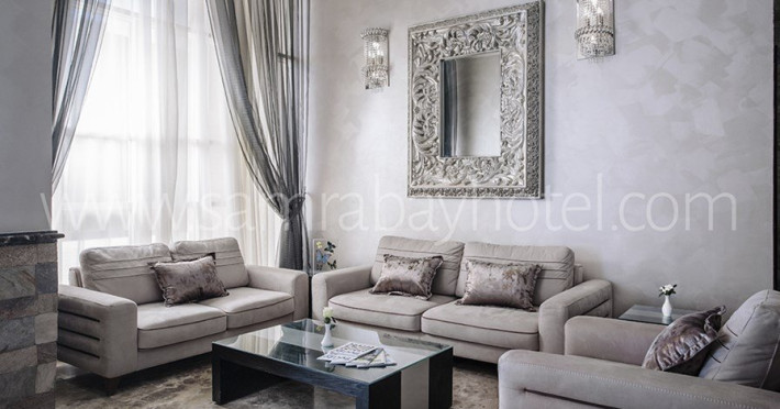 Junior suite, cu un pat matrimonial si living cu canapea extensibila, cu balcon si vedere spre gradina, piscisa sau mare.