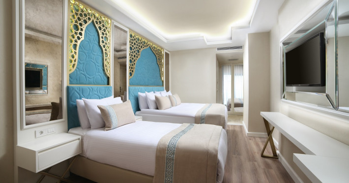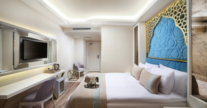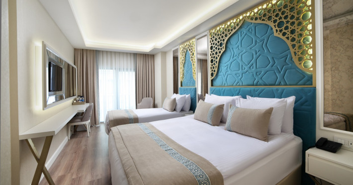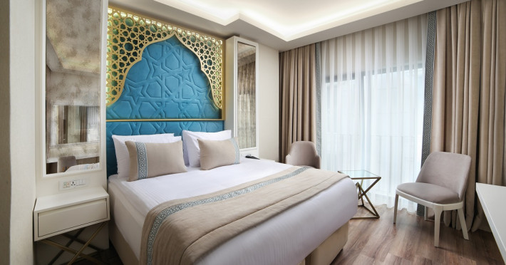The aparthotel Great Fortune Design Hotel is located next to a beach. The city centre is also just a few steps away. There is a 24h shuttle between the hotel and the airport 24h a day. The seasonally air-conditioned, GPS-verified halal hotel is equipThe aparthotel Great Fortune Design Hotel is located next to a beach. The city centre is also just a few steps away. There is a 24h shuttle between the hotel and the airport 24h a day. The seasonally air-conditioned, GPS-verified halal hotel is equipped with a 24h reception (check-in is possible around the clock), a lobby, Wi-Fi, internet access, a lift, a jacuzzi, a first aid kit, parking spaces (limited) as well as a TV lounge with satellite TV. You can store your valuables in the safe, and your luggage in the hotels storage room. In addition, the hotel Great Fortune Design Hotel is video-monitored 24h a day. For very young guests, kids chairs can be provided. There is also a laundry and ironing service. Ironing equipment can also be borrowed at the hotel. For your comfort the hotel page will ensure you are looked after. Guests at the accommodation can get a wake-up call from the hotel personnel. If you want to explore the holiday region, you can use the car rental service close to the hotel. At the reception, tickets are offered for excursions in the area. For guests on their honeymoon, the hotel has special offers such as champagne or flowers in the room. In your hotel, a lot of focus is placed on sustainability. This includes waste segregation in the rooms, the hotels own recycling bins, a central room air-conditioning and environmentally-friendly cleaning. That is why the hotel Great Fortune Design Hotel was also awarded a sustainability certificate. For water may incur extra charges at the hotel. The hotel requires that all guests pay a deposit upon arrival. Euro/Master Card and Visa are accepted as means of payment. Due to its barrier-free facilities , such as a hotel door that can be opened manually, separate, barrier-free entrances, wheelchair accessible rooms, a wheelchair accessible lift, a handrail in the elevator and wheelchair-accessible bathrooms, the hotel is also suitable for wheelchair users. Catering As catering services the hotel offers breakfast only and self-catering. Breakfast is offered continental or as brunch. As part of the all-inclusive service, water (24h) as well as coffee and tea (24h) are available at no extra charge. The drinks menu of the hotel includes water and coffee and tea. Distances Nearest town: approximately at 5 m Airport: approximately at 45 km Bus stop: approximately at 2 m Nearest bank: approximately at 5 m Sports amp; Leisure A sauna awaits you in the hotels own spa. The hotel also offers massages. Let yourself be pampered in the Hamam. Additional information The 6-storey hotel has a total of 78 rooms. One of these rooms offers disabled access. This hotel is gay-friendly. The hotel staff speak English, Russian and Turkish.Datorita dinamicitatii domeniului disponibilitatea ofertelor se modifica de la un moment la altul. De aceea ofertele sunt valabile in limita locurilor disponibile. Agentia nu este responsabila pentru eventualele neconcordante care pot aparea intre informatiile privind tarifele si alte detalii din site si informatiile primite in agentie. In aceste cazuri vor avea prioritate, intotdeauna, informatiile primite in agentie.