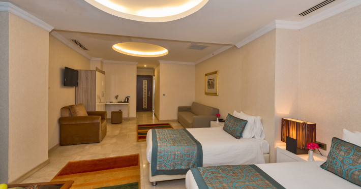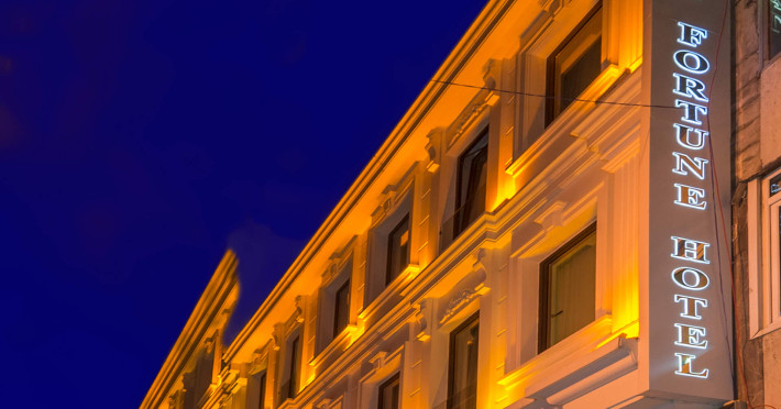 Just a few meters away from a beach is located the aparthotel Great Fortune Hotel. The city centre is also just a few steps away. There is a 24h shuttle between the hotel and the airport 24h a day. Nearby there is a cinema which offers entertainment Just a few meters away from a beach is located the aparthotel Great Fortune Hotel. The city centre is also just a few steps away. There is a 24h shuttle between the hotel and the airport 24h a day. Nearby there is a cinema which offers entertainment in high season. The seasonally air-conditioned, GPS-verified halal hotel has a 24h reception (check-in is possible around the clock), a lobby, Wi-Fi, internet access, a lift, a jacuzzi, a first aid kit, parking spaces (limited) as well as a TV lounge with satellite TV. Outside there is a childrens pool with a non-swimming area. Inside the hotel you can use a heated indoor pool. You can store your valuables in the safe, and your luggage in the hotels storage room. In addition, the hotel Great Fortune Hotel is video-monitored 24h a day. For very young guests, kids chairs can be provided. There is also a laundry and ironing service. Ironing equipment can also be borrowed at the hotel. For your comfort the hotel page will ensure you are looked after. Guests at the accommodation can get a wake-up call from the hotel personnel. If you want to explore the holiday region, you can use the car rental service close to the hotel. At the hotel reception, tickets are offered for excursions in the area. For guests on their honeymoon, the hotel has special offers such as champagne or flowers in the room. In your hotel, a lot of focus is placed on sustainability. This includes waste segregation in the rooms, the hotels own recycling bins, a central room air-conditioning and environmentally-friendly cleaning. That is why the hotel Great Fortune Hotel was also awarded a sustainability certificate. For water may incur extra charges at the hotel. The hotel requires that all guests pay a deposit upon arrival. Euro/Master Card and Visa are accepted as means of payment. Due to its barrier-free facilities , such as an automatic hotel door, separate, barrier-free entrances, wheelchair accessible rooms, a wheelchair accessible lift, a handrail in the elevator and wheelchair-accessible bathrooms, the hotel is also suitable for wheelchair users. Catering As catering services the hotel offers breakfast only and self-catering. Breakfast is offered continental or as brunch. All Inclusive Light includes beer. As part of the all-inclusive service, water (24h) as well as coffee and tea (24h) are available at no extra charge. Your physical well-being is catered for by a restaurant. The drinks menu of the hotel includes water, coffee and tea and beer. Distances Nearest town: approximately at 5 m Airport: approximately at 45 km Bus stop: approximately at 5 m Nearest bank: approximately at 5 m Sports amp; Leisure A sauna awaits you in the hotels own wellness area. The hotel also offers massages. Let yourself be pampered in the Hamam. Additional information The 6-storey hotel has a total of 62 rooms. This hotel is gay-friendly. The hotel staff speak English and Turkish.Datorita dinamicitatii domeniului disponibilitatea ofertelor se modifica de la un moment la altul. De aceea ofertele sunt valabile in limita locurilor disponibile. Agentia nu este responsabila pentru eventualele neconcordante care pot aparea intre informatiile privind tarifele si alte detalii din site si informatiile primite in agentie. In aceste cazuri vor avea prioritate, intotdeauna, informatiile primite in agentie.
