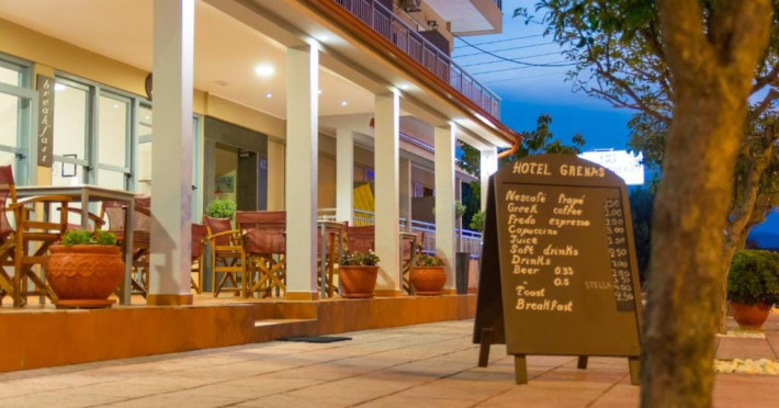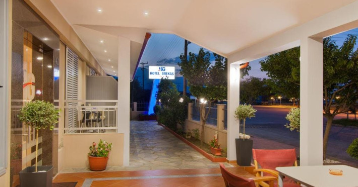 Grekas Hotel & furnished apartments is situated in the centre of Nei Pori just 150 meters from the beach, where you can swim in the crystal-clear waters of the Aegean sea and rest at one of our spacious and hospitable rooms of our hotel. Our Cafe â Bar, situated in the ground floor of the hotel, is open daily. There you can enjoy your snack and coffee during the day or a variety of cool drinks in the evening.Datorita dinamicitatii domeniului disponibilitatea ofertelor se modifica de la un moment la altul. De aceea ofertele sunt valabile in limita locurilor disponibile. Agentia nu este responsabila pentru eventualele neconcordante care pot aparea intre informatiile privind tarifele si alte detalii din site si informatiile primite in agentie. In aceste cazuri vor avea prioritate, intotdeauna, informatiile primite in agentie.