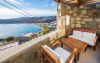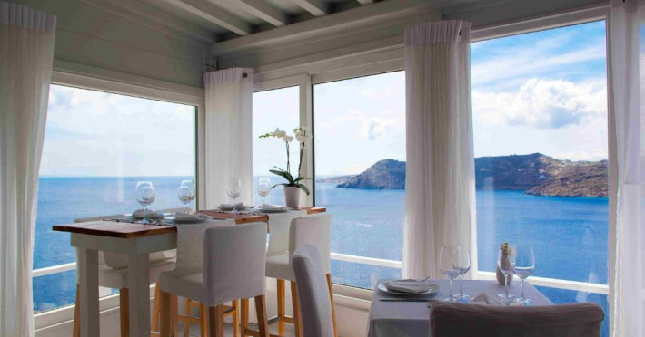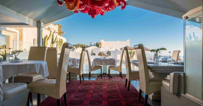 Bucătarul premiat pregătește mancăruri mediteraneene cu fructe de mare proaspete și legume organice, iar oaspeții se bucură de cina in timp ce admiră vederea la mare.