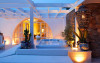 Barul de la piscină oferă băuturi răcoritoare, in timp ce oaspeții se pot relaxa langă piscină.