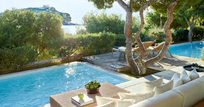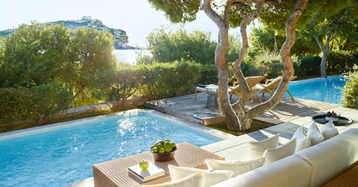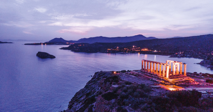 The Cape Sounio retreat. For the most famous full moons on earth come to the Temple of Poseidon. The myth of the Aegean Sea surrounds the Resort which in itself sits on an archaeological site with two private beaches and its bungalows and villas hidden in the pine hills.