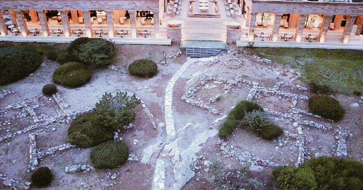 Chill out at the most stylish bar overlooking the Temple at Sounio. Located on the ground floor and terraces of the main building, the Lounge Bar features comfy sofas and armchairs to sit back, with a drink in hand and relish our varieties of finger foods, stylish dishes, and homemade desserts whilst embracing the glorious views. Enjoy the convivial evening atmosphere or relax on the peaceful terraces beside the water & fire fountains. Vegan & bio wines are available.
