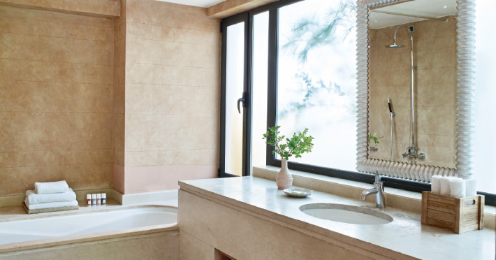 Beach amenities include umbrellas, showers, sun beds with padded mattresses, beach towels, changing cabins and toilets. A grand seawater pool with views of the famous Poseidon’s Temple, a children’s freshwater pool, indoor heated deep hydro-tonic ‘Aqua Elixir’ pool and private pools for you to relax and enjoy.
