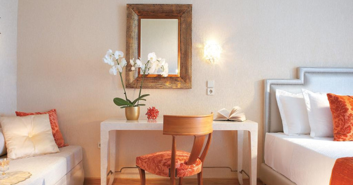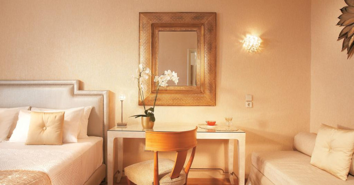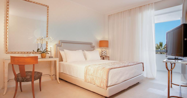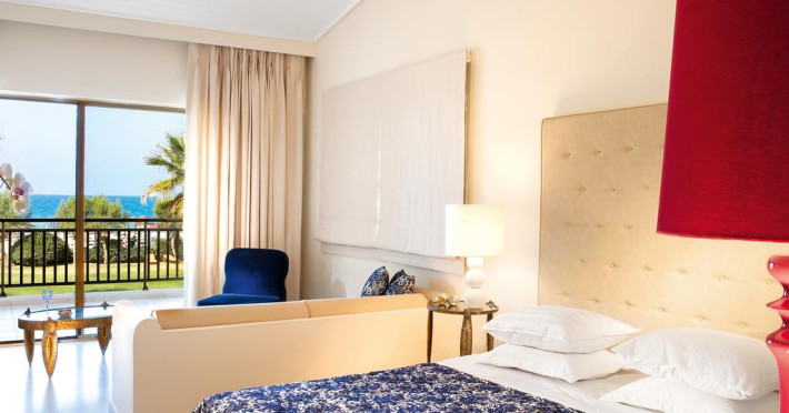 Fiecare cameră dispune de minibar. Oaspeții pot solicita serviciul de room service pentru a servi masa sau diverse băuturi. Camerele luminoase de la Grecotel Creta Palace sunt dotate cu gresie sau parchet, aer condiționat, Tv și seif. În camere există baie cu cadă sau duș ce are în dotare foehn și articole de toaletă gratuite. Unele camere au balcon cu vedere la mare sau la grădină. Oaspeții au acces gratuit la serviciul Wi-fi în camere. Curățenia in cameră se face zilnic. Anumite camere au cadă cu hidromasaj care asigură un plus de confort și răsfăț. Proprietatea oferă camere pentru familie cu o suprafață mai mare și un număr mai mare de paturi față de cele standard. Se pot rezerva de asemenea camere pentru nefumători.