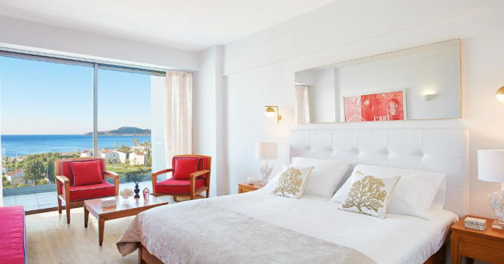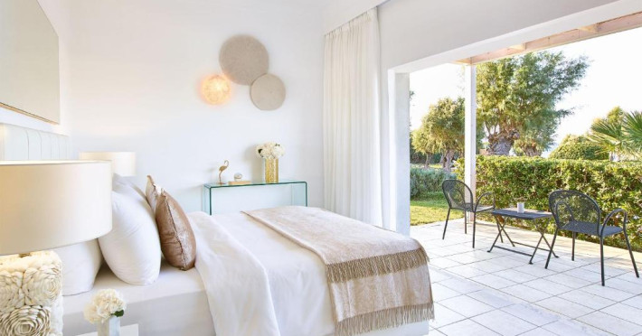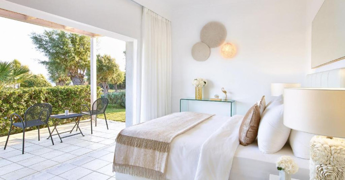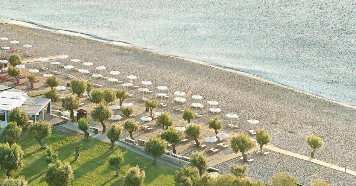 Grecotel Lux Me Dama Dama are acces la o plajă publică. Pe plajă există șezlonguri și umbrele de plajă.