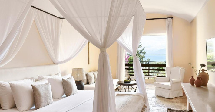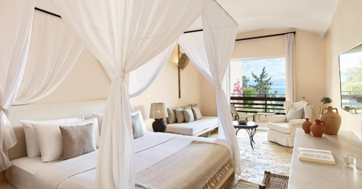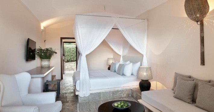 Toate camerele bine dotate au TV prin satelit și balcon sau terasă. Acestea au vedere la grădini și la Marea Ionică, iar bungalourile sunt ascunse printre măslini. Băile private includ duș sau cadă, uscător de păr și articole de toaletă gratuite.