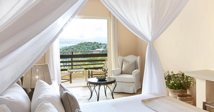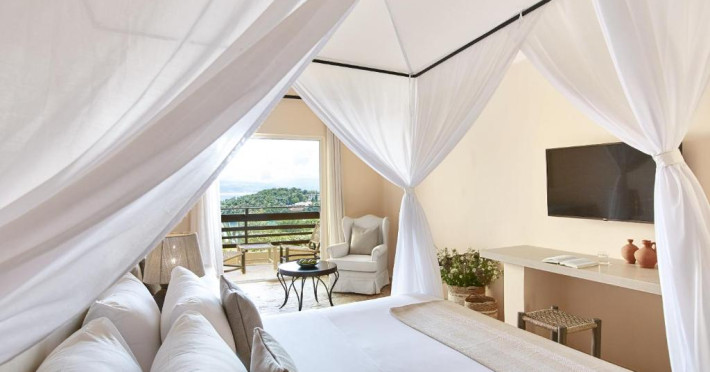 Grecotel Daphnila Bay este amplasat pe versantul unui deal inverzit cu vedere la Golful Dassia din Corfu și include 2 piscine cu apă dulce și o piscină pentru copii, situate in mijlocul unor grădini inflorite. Proprietatea pune la dispoziție o varietate de activități și facilități, precum cluburi pentru copii și adolescenți și facilități de spa și gimnastică.