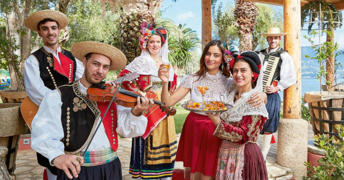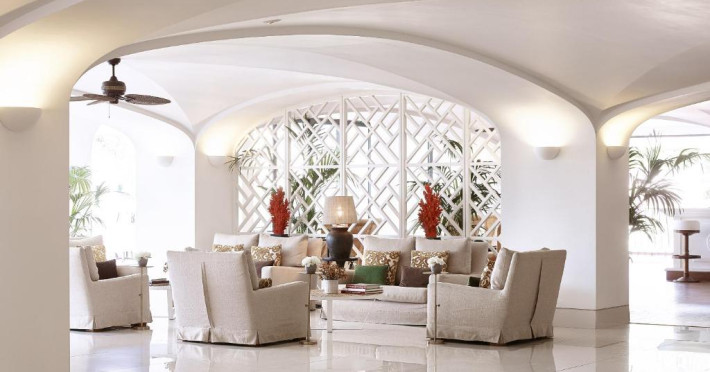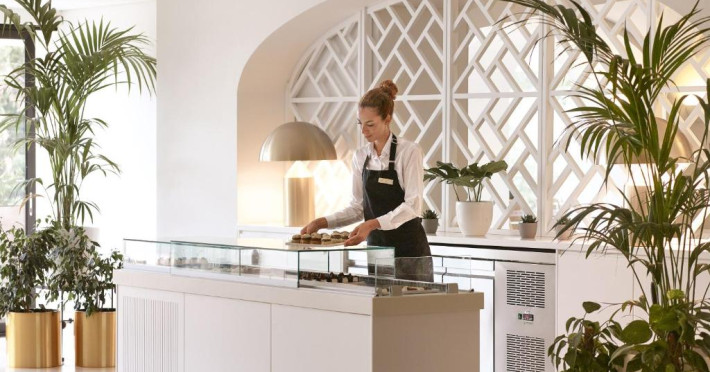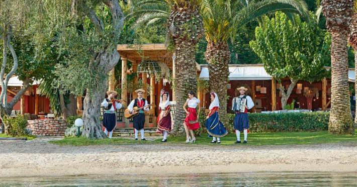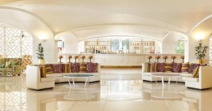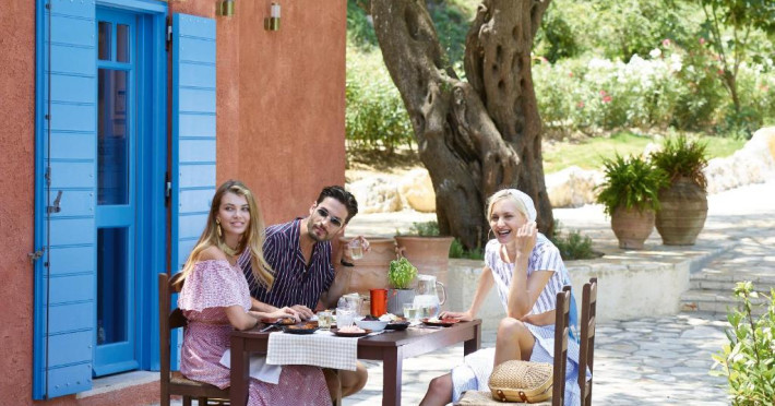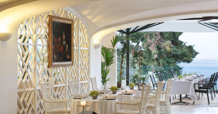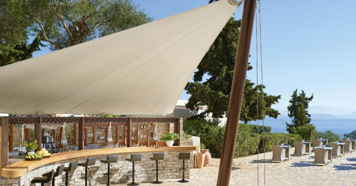 La restaurantul Marco Polo se pot savura preparate grecești și internaționale, la pranz și la cină, iar restaurantul Giardino di Mama, situat pe malul mării, oferă pizza de casă și paste proaspete. De asemenea, oaspeții se pot relaxa și pot savura o băutură răcoritoare la barul Waterfall, de langă piscină sau in holul cu decor elegant.
