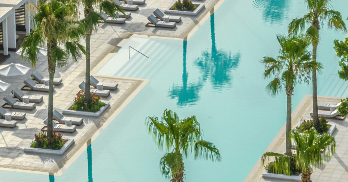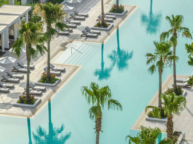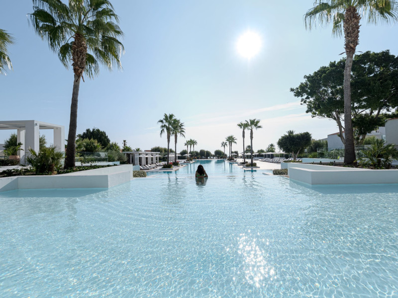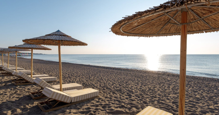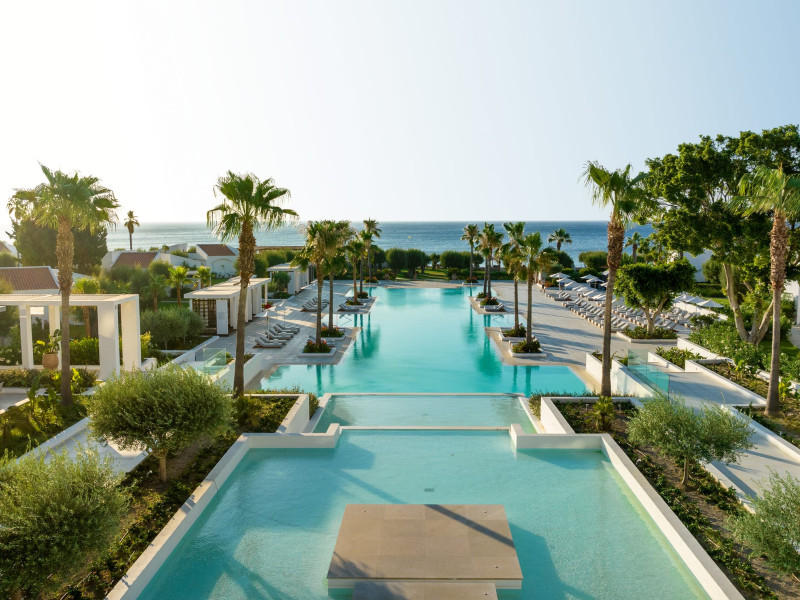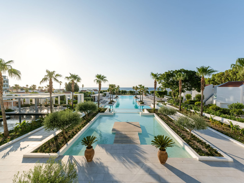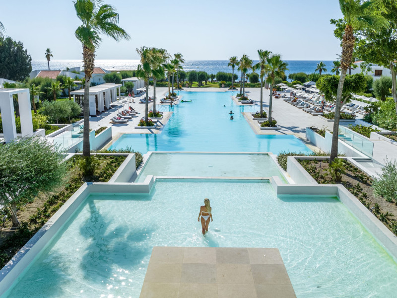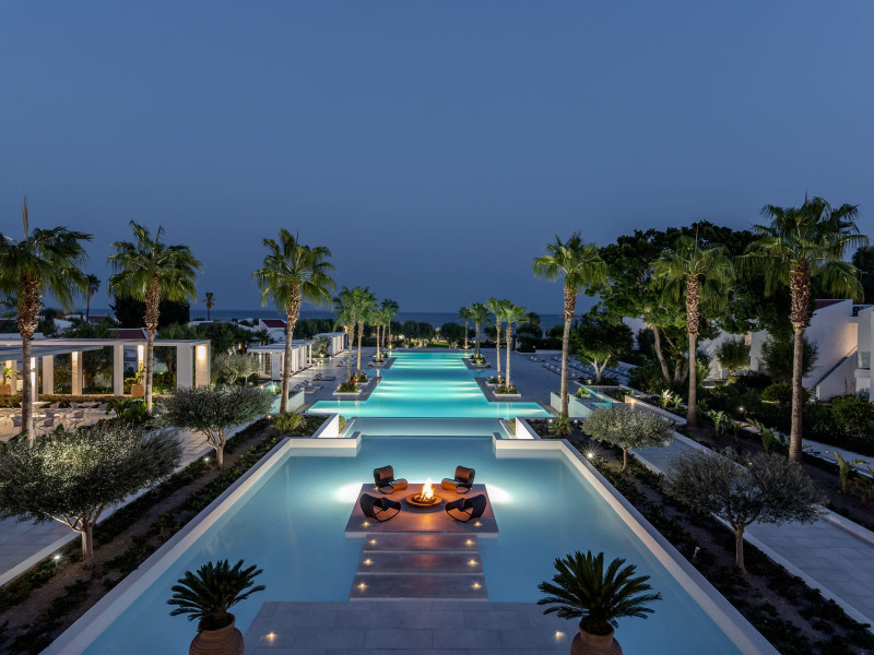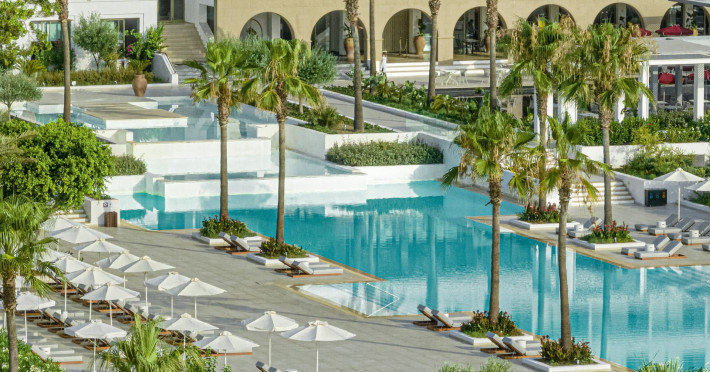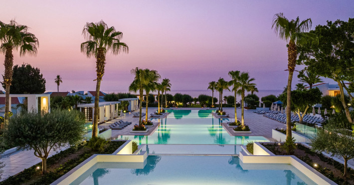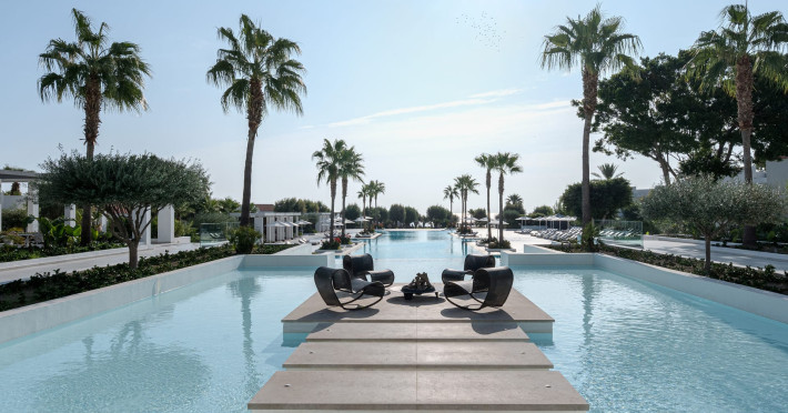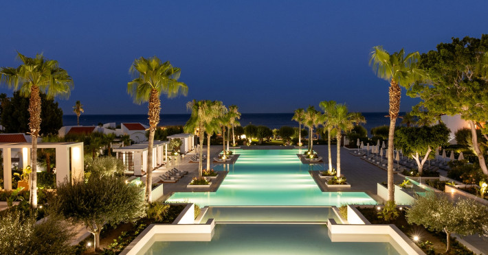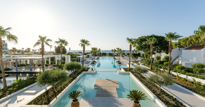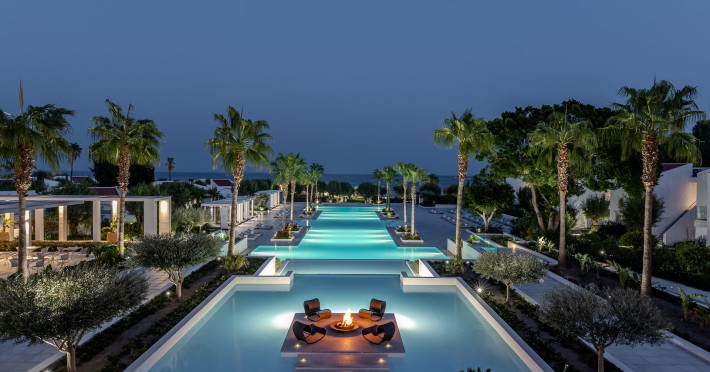 The resort is named after the dama-dama deer that lives on the island since antiquity and its marble idols stand proud on famous Rhodes harbour. Dama Dama lies on famous Faliraki beach & features sun-filled public spaces, a 100-meter pool and gardens with bungalows framed by a vast beach line.