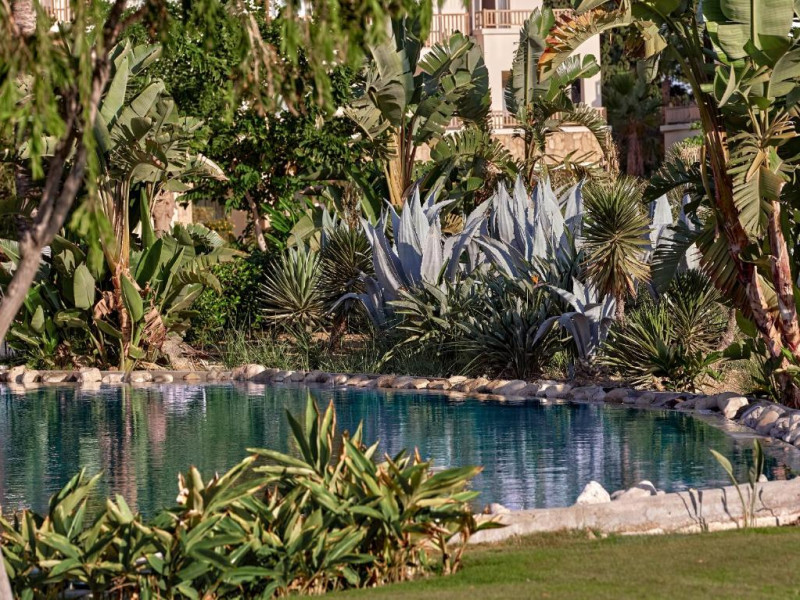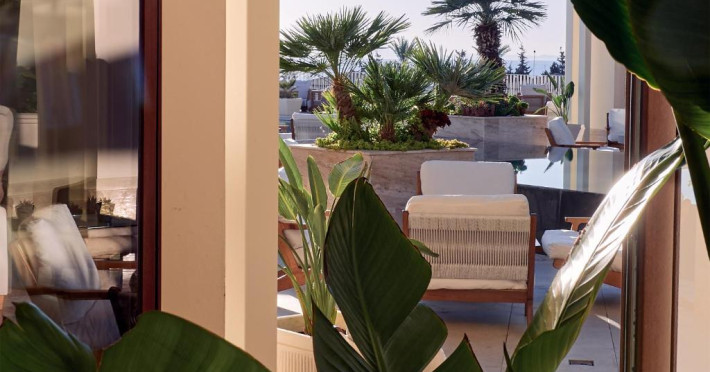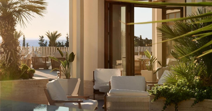 Camerele elegante combină designul contemporan cu accente mediteraneene și oferă vedere spre mare sau grădini. Resortul este ideal atat pentru familii, beneficiind de mini club și piscină pentru copii, cat și pentru cupluri in căutarea unei vacanțe rafinate in stil grecesc.