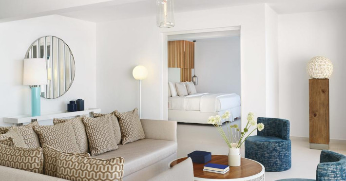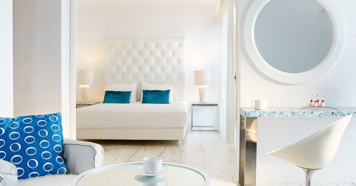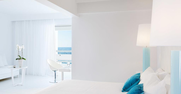 Camerele confortabile de la Grecotel Lux.me White Palace au pardoseală de gresie/ marmură, aer condiționat, Tv cu canale prin satelit și seif. Fiecare cameră dispune de un aparat pentru preparare cafea sau ceai, cană-fierbător și minibar. Oaspeții pot solicita serviciul de room service pentru a servi masa sau diverse băuturi. Oaspeții au acces gratuit la serviciul Wi-fi în camere. Camerele au balcon cu vedere la mare, la piscină sau la grădină. În camere există baie cu cadă sau duș ce are în dotare foehn și articole de toaletă gratuite. Curățenia in cameră se face zilnic. Proprietatea oferă camere pentru familie cu o suprafață mai mare și un număr mai mare de paturi față de cele standard.