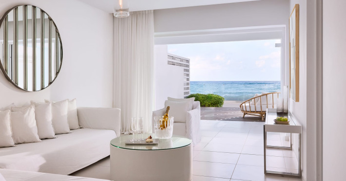 Grecotel is excited to welcome you to the âLUXME®â upscale all-inclusive holiday concept which combines spectacular seafront location with great service, outstanding dining, tailored activities, sports, wellness amp; entertainment. Grecotel LuxMe White lies on the islandâs stunning north coast and features open-style public spaces amp; generous light-filled accommodations that mirror the easy elegance of a Grecotel luxury resort lifestyle.Datorita dinamicitatii domeniului disponibilitatea ofertelor se modifica de la un moment la altul. De aceea ofertele sunt valabile in limita locurilor disponibile. Agentia nu este responsabila pentru eventualele neconcordante care pot aparea intre informatiile privind tarifele si alte detalii din site si informatiile primite in agentie. In aceste cazuri vor avea prioritate, intotdeauna, informatiile primite in agentie.