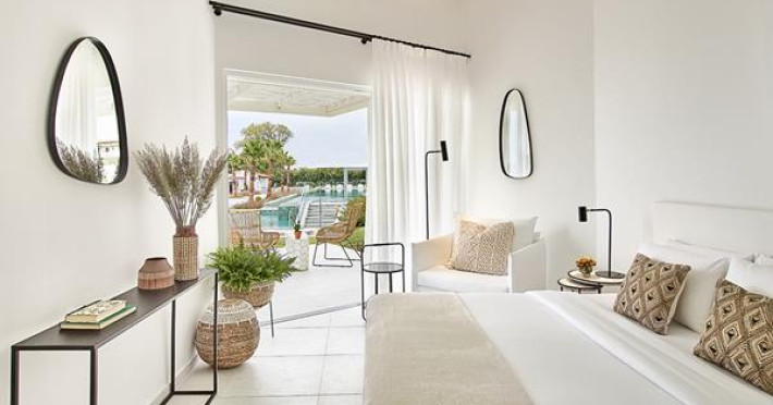 Set on the Kassandra peninsula of Halkidiki, renowned around the world for its gorgeous beaches, Margo Bay is a brand new relaxing retreat exuding the authentic spirit of Greece. This long time favourite with loyal guests, due to its outstanding service and exquisite cuisine, occupies a sweeping stretch of sandy coast lapped by a sparkling sapphire sea. Near the picturesque village of Hanioti, with the lights of Sithonia across the bay, the resortâs sleek, modern design blends into the environment.Hotel InformationBrand new guestrooms, bungalows and family suites offer a private sanctuary for everyone. Wake up with a shimmering view over Kassandra Bay, unwind to a gentle breeze, and soak up the sunshine from your tranquil private veranda. This beloved Grecotel that now swirls into the realm of super design chic unveils its new restaurants and bars inspired by contemporary culinary concepts. Experience brand new dining options next to the white sand beach and mesmerizing waters.Datorita dinamicitatii domeniului disponibilitatea ofertelor se modifica de la un moment la altul. De aceea ofertele sunt valabile in limita locurilor disponibile. Agentia nu este responsabila pentru eventualele neconcordante care pot aparea intre informatiile privind tarifele si alte detalii din site si informatiile primite in agentie. In aceste cazuri vor avea prioritate, intotdeauna, informatiile primite in agentie.