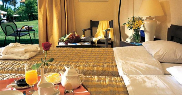 Cele 205 camere Duble/Triple/Family, ale hotelului dotate cu instalatie de aer conditionat, internet wireless, TV prin satelit, telefon, frigider ce sunt usor accesibile, iar balcoanele sau terasele camerelor frumos mobilate iti ofera frumoase privelisti spre mare sau spre zona verde ce inconjoara hotelul.
