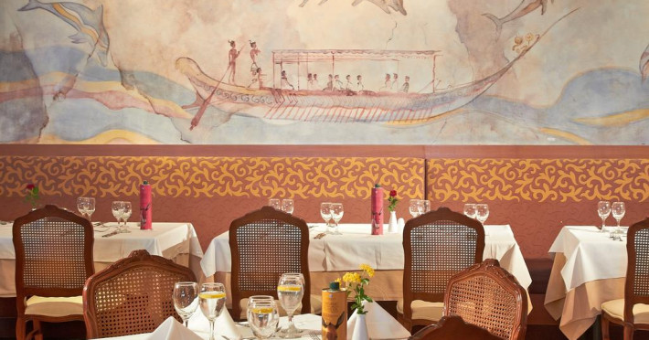La Grecotel Club Marine Palace Suites oaspeții au la dispoziție 3 restaurante unde pot savura mâncăruri delicioase, în stil bufet sau à la carte. Preparate din bucătăria mediteraneeană și italiană sunt preparate zilnic. Masa poate fi servită atât în interior, cît si în aer liber, pe terasă, în funcție de vreme. Oaspeţii pot avea diverse băuturi răcoritoare sau alcoolice la bar.