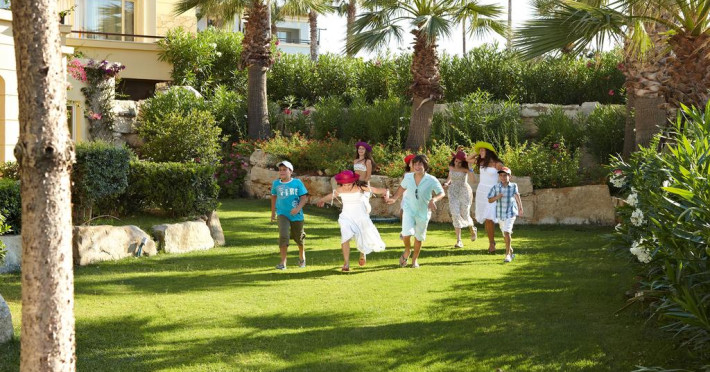 Proprietatea este o alegere potrivită pentru familiile cu copii. Cei mici se pot distra în aer liber la piscina pentru copii, prevăzută cu tobogan cu apă sau în locul de joacă special amenajat. Pentru orele toride cei mici pot opta pentru clubul amenajat la interior, unde există jocuri și programe de animație. Copiii au la dispoziție jocuri și puzzle-uri. Pentru cei mai mici Grecotel Club Marine Palace Suites oferă cărucioare și servicii de babysitting.