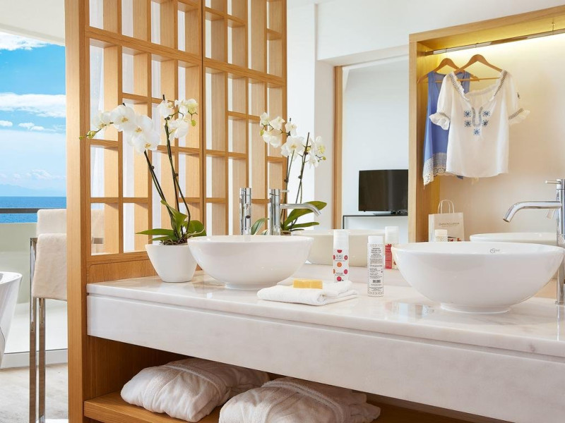 Dotari camere: aer conditionat, TV, telefon, seif, articole de toaleta, oglinda de machiaj, baie cu cada sau dus, balcon.