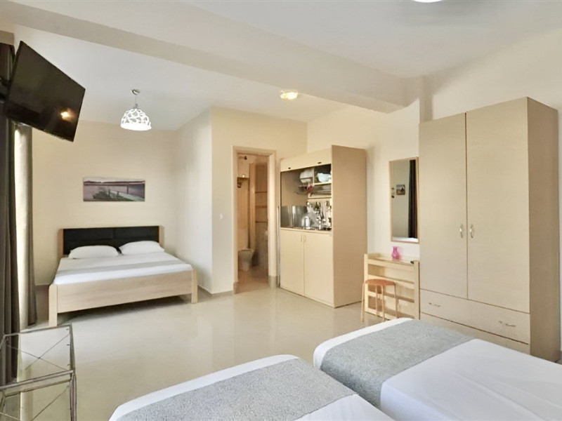 Localizare: Greek Pride Panthea Studios se afla in Skala Fourka, Halkidiki, oferind un cadru ideal pentru vacante de familie relaxante.Facilitati hotel: Unitatea este de tip self catering si este formata din 8 camere.