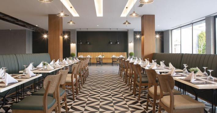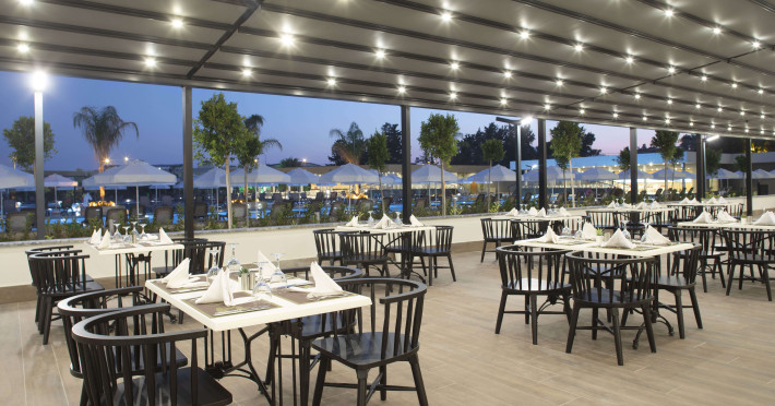 La Green Garden Resort oaspeții au la dispoziție 2 restaurante unde pot savura mâncăruri delicioase, în stil bufet sau à la carte. Preparate din bucătăria locală, mediteraneeană și italiană așteaptă să fie degustate în fiecare zi. Pizza este de asemenea o opțiune culinară pentru cei gurmanzi. Masa poate fi servită atât în interior, cît si în aer liber, pe terasă, în funcție de vreme. 4 baruri sunt disponibile cu o ofertă variată de băuturi răcoritoare și alcoolice. În cadrul proprietății există și un snack bar care servește băuturi și gustări.