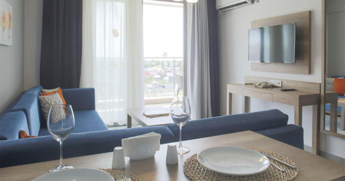 Sunt disponibile 314 camere. Camerele luminoase de la Green Garden Resort sunt dotate cu gresie sau parchet, aer condiționat, Tv și seif. Fiecare cameră dispune de mașină pentru preparare cafea sau ceai și fierbător Unele camere au balcon cu vedere la mare sau la grădină. În camere există baie cu cadă sau duș ce are în dotare foehn și articole de toaletă gratuite. Curățenia in cameră se face zilnic. Toate camerele spațioase de la Green Garden Resort au zonă de relaxare cu canapea, ceea ce oferă un plus de confort. În fiecare unitate de cazare există o bucătărie utilată cu plită de gătit și ustensile de bucătărie. De asemenea, sunt disponibile o zonă de luat masa și un cuptor cu microunde. Proprietatea oferă camere pentru familie cu o suprafață mai mare și un număr mai mare de paturi față de cele standard. Se pot rezerva de asemenea camere pentru nefumători.