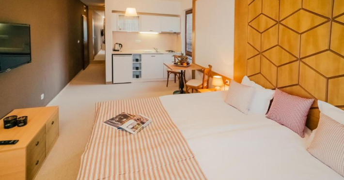 Situată în Bansko, această proprietate de 4 stele oferă piscină interioară, piscină în aer liber, cu șezlonguri și umbrele de soare, precum și centru spa/ wellness care asigură servicii pentru un sejur extrem de relaxant. Proprietatea are servicii de recepție cu program non - stop și concierge. Se oferă acces gratuit la internet Wi-fi în spațiile publice. Parcarea este disponibilă la proprietate gratuit.