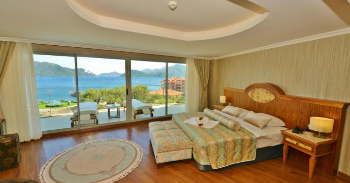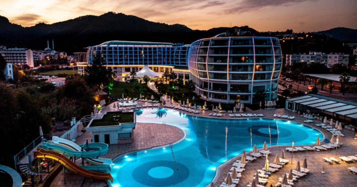 Localizare: Hotelul se află în apropiere de Marmaris Halk Plajı, la 49 km de Aeroportul Dalaman. Facilități hotel: 3 piscine, acces imediat la plajă, camere de familie, WiFi gratuit inclus, transfer de la și/sau la aeroport, spa și centru de wellness, parcare gratuită, sală de fitness, bar, zonă de plajă privată. Dotări camere: balcon, vedere la grădină, aer condiționat, baie privată, TV cu ecran plat, terasă, Minibar. Servicii contra cost: serviciu de transfer, serviciu de curățătorie și călcătorie, snorkelling, scufundări, facilități sporturi nautice, pescuit, echipament tenis, biliard, masaj, sală fitness, spa și centru wellness, saună, jacuzzi. IMPORTANT: Descrierea hotelului se bazează pe detaliile disponibile la momentul pregătirii tarifelor pentru sezonul turistic ce urmează a se desfășura și are caracter pur informativ. Hotelul poate aduce modificări de structură, denumiri camere, tip servicii incluse/neincluse și altele, fără a notifica în prealabil. Pentru informațiile oficiale vă rugăm să consultați website-ul hotelului.Datorita dinamicitatii domeniului disponibilitatea ofertelor se modifica de la un moment la altul. De aceea ofertele sunt valabile in limita locurilor disponibile. Agentia nu este responsabila pentru eventualele neconcordante care pot aparea intre informatiile privind tarifele si alte detalii din site si informatiile primite in agentie. In aceste cazuri vor avea prioritate, intotdeauna, informatiile primite in agentie.