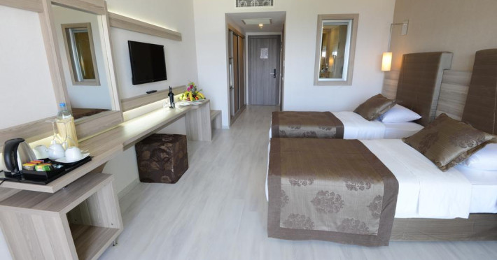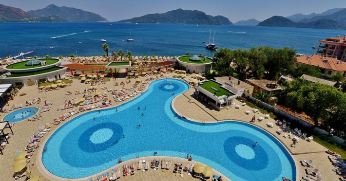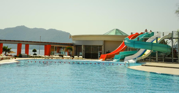 Hotelul este localizat in statiunea Marmaris, la 70 km de aeroportul din Bodrum si la 1 km de orasul Marmaris. Deschis in 2014, acest hotel ofera cazare in cladirea principala de 8 nivele. Camerele moderne si spatioase sunt dotate cu aer conditionat, uscator de par, televizor, telefon si mini-bar. Pe langa restaurantul principal, hotelul mai detine si 3 restaurante a la carte cu specific pescaresc, italian si mexican. Plaja este cu nisip/pietris si este dotata cu sezlonguri si umbrele de soare. Copii au si ei o piscina exterioara, loc de joaca, mini-club si bona (contra cost). Alte activitati disponibile la hotel sunt fitness, tenis de masa, biliard, darts si diferite sporturi acvatice.Localizare