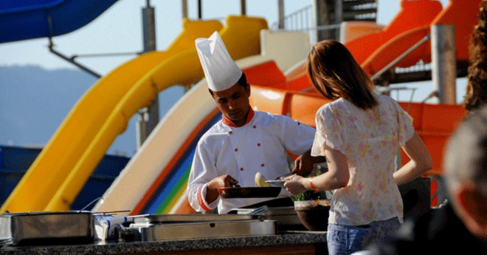 La Green Nature Resort & Spa oaspeții au la dispoziție un restaurant care servește mâncare în stil bufet. Masa poate fi servită atât în interior, cît si în aer liber, pe terasă, în funcție de vreme. Oaspeţii pot avea diverse băuturi răcoritoare sau alcoolice la bar. În cadrul proprietății există și un snack bar care servește băuturi și gustări.