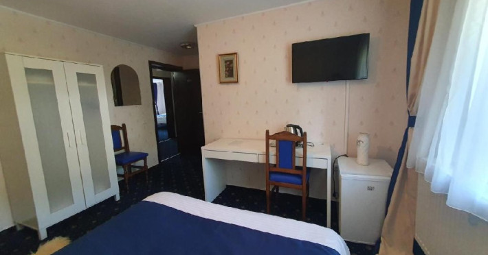 Camera dubla: 17 camere duble la standard de 3*, cu pat dublu matrimonial, sunt excelente pentru cazarile de o persoana, cuplu sau pentru doi oaspeti ce doresc sa doarma in aceeasi camera.