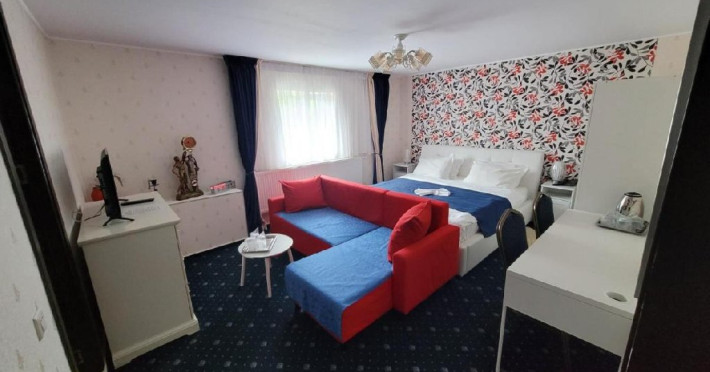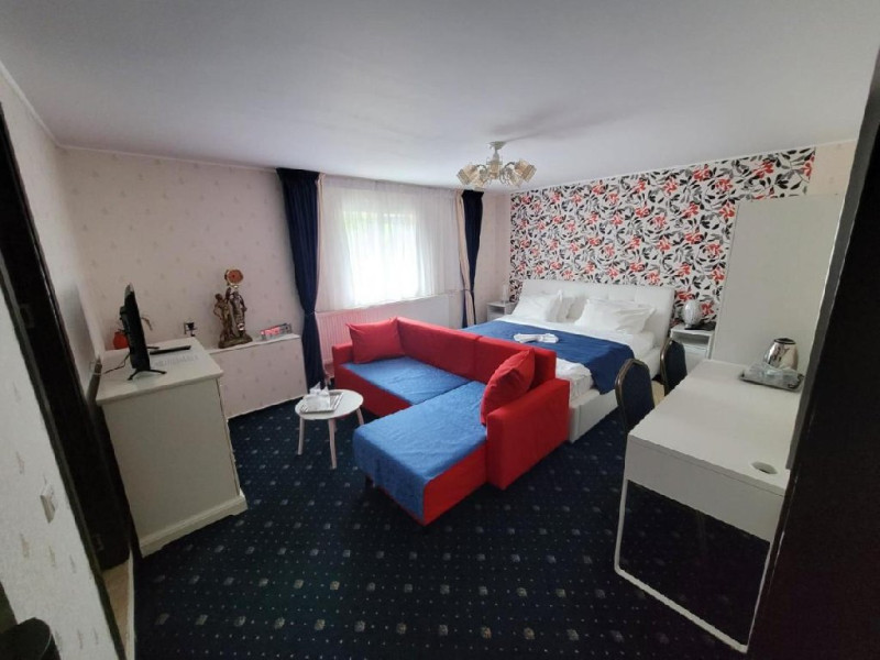 Castelul Peles si gara se afla la 1 km de hotel, iar la 3 km este o partie de schi.
