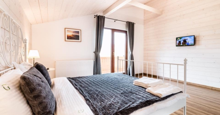 Green Resort este un ansamblu exclusivist, compus din 9 case de vacanta individuale, fiecare casa avand curte si terasa proprie, asigurandu-se astfel linistea si intimitatea si fiind gata sa satisfaca si cei mai pretentiosi oaspeti, departe de zgomotul si aglomeratia cotidiana.Va punem la dispozitie 2 dintre cele 9 cabane. Ambele sunt compuse din living cu bucatarie utilata, 2 dormitoare cu balcon, 2 bai, putand gazdui 4 adulti fiecare.