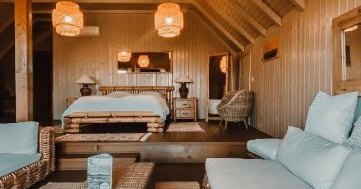 Apartamentul cu un dormitor este format dintr-o camera (matrimoniala sau twin) la etaj si un living la parter (cu grup sanitar si terasa), legatura facandu-se printr-o scara interioara, de lemn. Livingul din apartamente este dotat cu 2 fotolii de ratan. Acestea nu sunt extensibile, dar spatiul permite instalarea unui pat suplimentar (la cerere, in functie de diponibilitate).