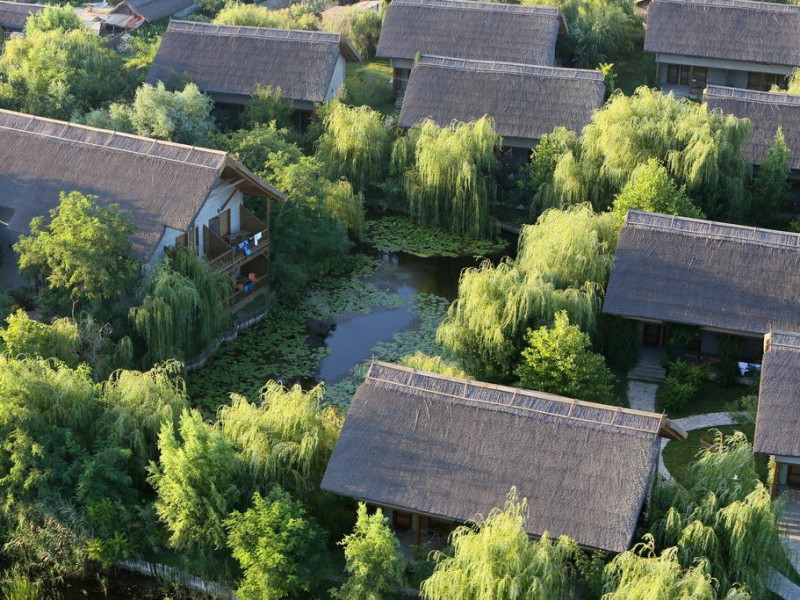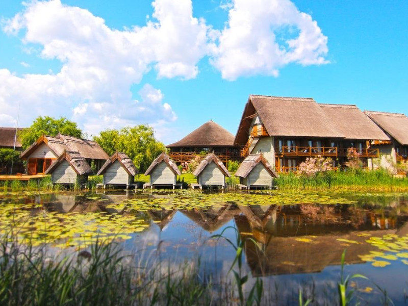 Terasele camerelor au vedere spre Dunare si mare. Vilele sunt inconjurate de o salba de lacuri, cu nuferi si alte plante de apa, unde cuibaresc rate salbatice, pe care le puteti urmari in timp ce va savurati cafeaua.