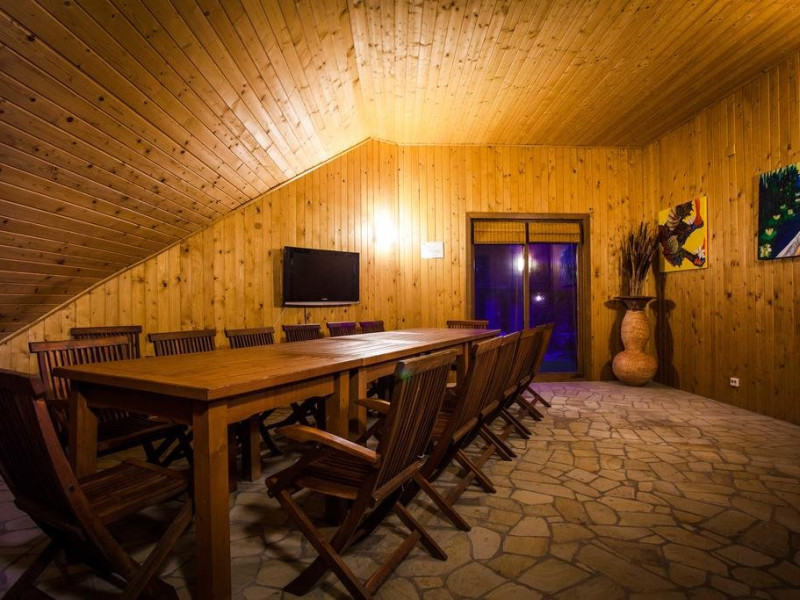Decoratia, de un lux neostentativ, se remarca prin grija pentru detaliu. Peretii lambrisati in lemn patinat si mobilierul colonial din bambus cu drapajele din in brut, aduc in interior culorile subtile si calde ale deltei. Baile sunt generoase, cu finisaje impecabile, si toaleta separata. Camerele au minibar si aer conditionat.