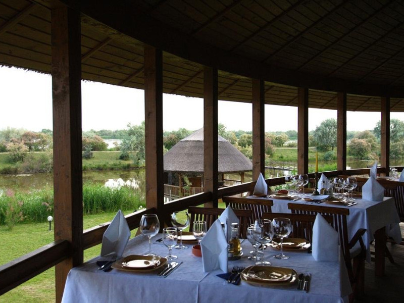 Oaspetii nostri pot lua masa pe terasa restaurantului (capacitate totala: 240 locuri, parter / etaj, interior/ exterior), privind fluviul si nemarginirea marii sau pe pajistea cu umbrare de stuf, situata pe malul lacului.Bucatarii nostri va pot pregati preparate gustoase din peste sau carne din bucataria internationala si cea locala.