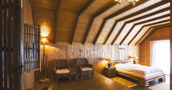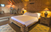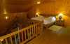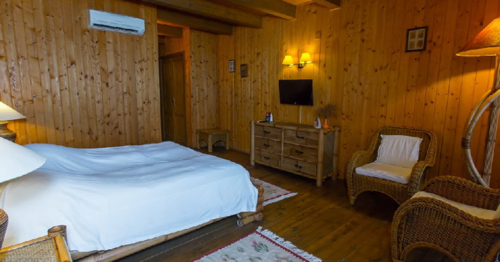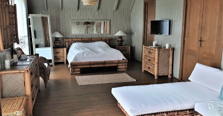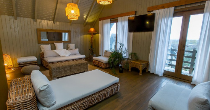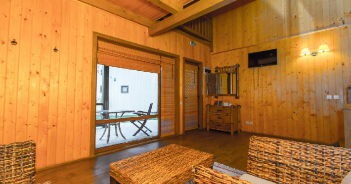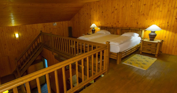 Apartamentul cu un dormitor este format dintr-un living, la parter (cu grup sanitar, terasa) si un dormitor (cu un pat matrimonial sau doua twin), la etaj, legatura facandu-se printr-o scara interioara, de lemn, care continua cu balustrada. Livingul din apartament este dotat cu un pat single, masuta si doua fotolii din ratan, Acestea nu sunt extensibile, dar spatiul permite instalarea unui alt pat suplimentar (pliant, la cerere, in functie de disponibilitate).