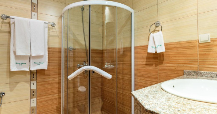 Camerele luminoase de la Green Wood Hotel & Spa sunt dotate cu aer condiționat, Tv și seif. Oaspeții au la dispoziție serviciul de room service pentru a servi masa sau diverse băuturi. În camere există baie cu cadă sau duș prevăzută cu foehn. Oaspeții au acces gratuit la serviciul Wi-fi în camere. Curățenia in cameră se face zilnic. Proprietatea oferă camere pentru familie cu o suprafață mai mare și un număr mai mare de paturi față de cele standard.