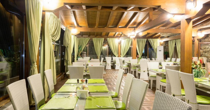 La Green Wood Hotel & Spa oaspeții au la dispoziție un restaurant care servește mâncare în stil bufet și à la carte. Preparate din bucătăria locală și internațională așteaptă să fie degustate în fiecare zi. Masa poate fi servită atât în interior, cît si în aer liber, pe terasă, în funcție de vreme. Oaspeţii pot avea diverse băuturi răcoritoare sau alcoolice la bar. Pentru cei cu anumite nevoi de nutriție, Green Wood Hotel & Spa oferă meniuri pentru diete speciale.