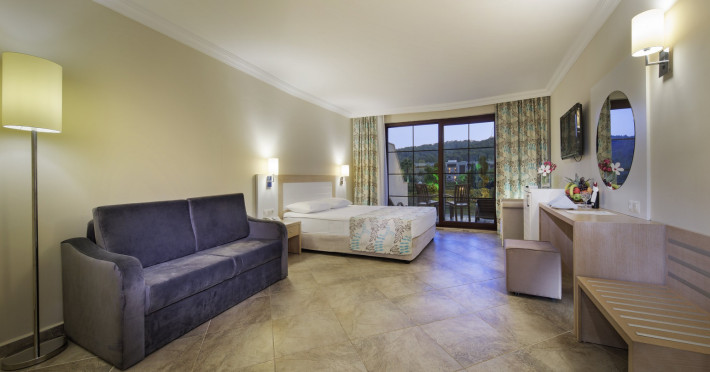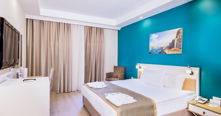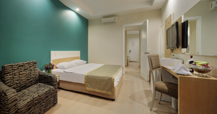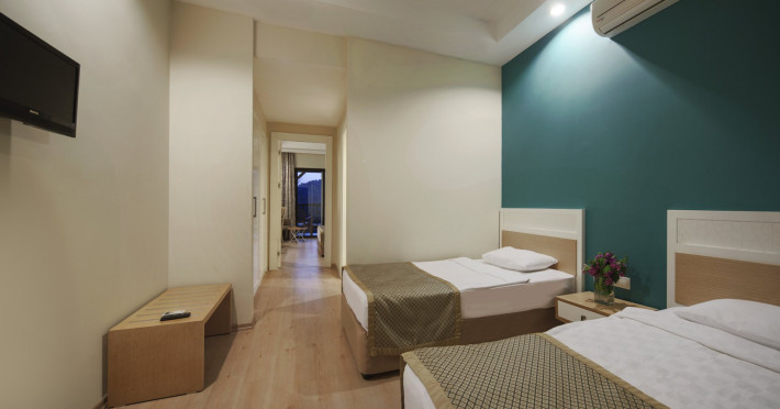 The accommodation Greenbay Resort Spa is located in the vicinity of a private sandy/pebble beach. The nearest shops you can reach within around 23 km, a supermarket is around 6 km away. On the beach are sun loungers, cushions, sun umbrellas and beaThe accommodation Greenbay Resort Spa is located in the vicinity of a private sandy/pebble beach. The nearest shops you can reach within around 23 km, a supermarket is around 6 km away. On the beach are sun loungers, cushions, sun umbrellas and beach towels available. Cold drinks are served at the beach bar. The seasonally air-conditioned, GPS-verified hotel has a 24h reception (check-in is possible around the clock), a lobby bar, Wi-Fi, internet access, a lift, a supermarket and other shops, a boutique, a hairdresser, a jacuzzi, a first aid kit, parking spaces as well as a TV lounge with satellite TV. In the outdoor area you will find a garden as well as a supervised pool, where pool towels are available for free. For children there is also a separate childrens pool with a water slide (type open slide). Furthermore, you can relax outdoors on a terrace. You can store your valuables in the safe, and your luggage in the hotels storage room. In addition, the hotel Greenbay Resort Spa is video-monitored 24h a day. For your entertainment, the hotel offers a cinema, a theatre and a disco. For the young hotel guests there is a playground. For very young guests, kids chairs can also be provided. For the smallest children prams can be rented in the hotel. There is also a laundry service available at an additional cost to customers. For your comfort the hotel page will ensure you are looked after. If necessary, you can contact the medical centre at any time (for a fee). For conventions and other business meetings, the hotel offers a business centre as well as a (auditorium-style) conference area with a reception, printer, scanner as well as internet access. A photographer can also be ordered from the hotel for business events. If you want to explore the holiday region, you can use the car rental service close to the hotel (extra fee). For guests on their honeymoon, the hotel has special offers such as a romantically-decorated room, personalised rooms/articles, special honeymoon packages, sparkling wine or a basket of fruit in the room. In your hotel, a lot of focus is placed on sustainability. This includes the hotels own recycling bins, the provision of soap and shampoo dispensers, organic food and ecological meals and environmentally-friendly cleaning. That is why the hotel Greenbay Resort Spa was also awarded a sustainability certificate. Euro/Master Card and Visa are accepted as means of payment. Due to its barrier-free facilities , such as a hotel door that can be opened manually, barrier-free entrances, wheelchair accessible rooms, a wheelchair accessible lift and wheelchair-accessible bathrooms, the hotel is also suitable for wheelchair users. Catering As catering services the hotel offers all-inclusive. Breakfast is offered from the buffet or à la carte. Lunch and dinner are also served from the buffet. As part of the all-inclusive service, local alcoholic beverages (24h) are available around the clock and at no extra charge. For the meals, there are a buffet restaurant with terrace (Italian, Mediterranean, calorie-reduced, gluten-free and vegetarian dishes) and the pool bar. Appropriate clothing is required for lunch and dinner. Distances Airport: approximately at 12 km Aqua park: approximately at 30 km Bus stop: approximately at 100 m Cinema: approximately at 23 km Port: approximately at 23 km Nearest doctor: approximately at 23 km Nearest dentist: approximately at 23 km Pharmacy: approximately at 6 km Hospital: approximately at 23 km Dialysis station: approximately at 23 km Golf course: approximately at 12 km Nearest bank: approximately at 23 km Tourist information: approximately at 23 km Nearest park: approximately at 6 km Riding school: approximately at 35 km Nearest riding route: approximately at 35 km Dive shop: approximately at 23 km Wave surfing: approximately at 23 km Wave surfing school: approximately at 23 km Sports amp; Leisure To keep your fitness up on holiday, there is a gym (open 24 hours a day) for guests to use. For an fee, you can take advantage of various water sports, including banana and speedboats, catamaran, jet skiing and water aerobics. If you want to stay on the ball during your holidays, youll find a basketball court. During your holiday you can also take part in aerobics and yoga courses. There is also the option to play billiards. Those who want to practice archery or air rifle shooting will find facilities for this at the hotel. With beach volleyball, darts and squash various other sports offer a lot of variety on holiday. In addition to a tennis court (hard court) with floodlighting there is also a tennis rental. Also boccia is offered as a further leisure activity. Furthermore, various water sports such as windsurfing are offered in the area. A sauna (extra fee) and a wellness shower await you in the. The hotel also offers massages (extra fee) and beauty treatments (extra fee). Let yourself be pampered in the Hamam and find peace and quiet in the relaxation room. Infants can be looked after in the hotels own baby club. For older children the care takes place in the childrens club. There is a babysitting service (extra fee) in the hotel, so that adults can also find some time to relax. Junior hotel guests can also let off steam in the mini disco. In terms of adult entertainment, evening shows and live music are presented. Additional information Larger groups of young people under the age of 25 are not allowed in this property, as this is a hotel especially for families. The hotel staff speak English, German, French, Russian, Arabic and Turkish.Datorita dinamicitatii domeniului disponibilitatea ofertelor se modifica de la un moment la altul. De aceea ofertele sunt valabile in limita locurilor disponibile. Agentia 