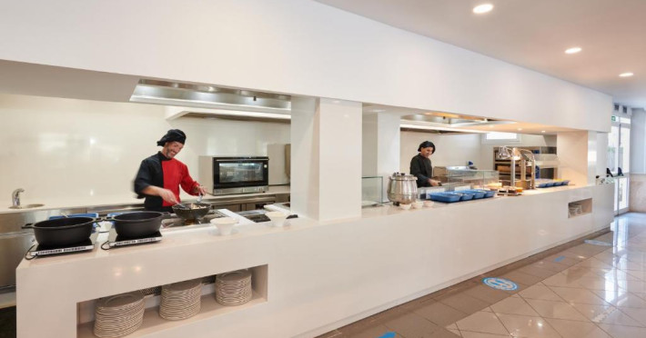 Alcudia Suite are un snack bar și oferă un bufet variat de mic dejun. Pune, de asemenea, la dispoziție un lounge bar cu o zonă de terasă. Sunt disponibile mese ușoare, inclusiv salate și paste.