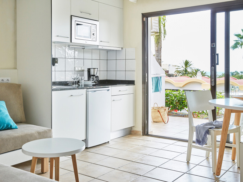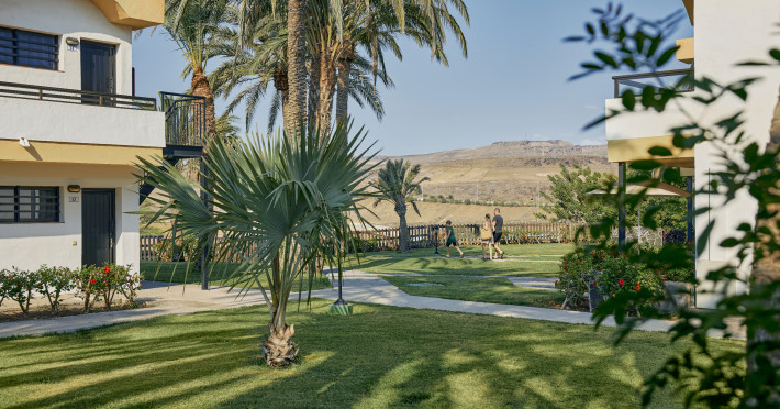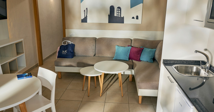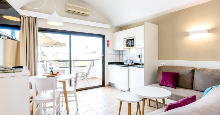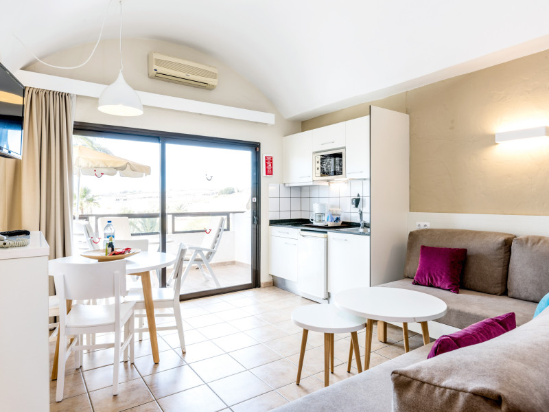 The aparthotel Grupotel Las Pitas is located approximately 300 m from a public sandy/rocky/stone beach. The nearest restaurants and bars can be found within 200 m. The old town is around 45 km away. A supermarket and other shops you also reach after approximately 200 m. On the beach are cushions and sun umbrellas for a fee as well as beach towels available. Near the beach there is a promenade where you can go for a stroll. The GPS-verified hotel has a 24h reception (check-in is possible around the clock), a lobby bar, Wi-Fi, internet access, a lift, a supermarket and other shops, a boutique, cash machine, a hairdresser, a jacuzzi, a first aid kit as well as a TV lounge with satellite TV. In the outdoor area of the property you will find a garden as well as a seasonally heated and supervised pool (open all year), where sun loungers, sun umbrellas and pool towels are available for free. There is also a separate children's pool with a non-swimming area as well as a water slide (type open/tunnel slide). Furthermore, you can relax outdoors on the sun terrace. You can store your valuables in the safe, and your luggage in the hotel`s storage room. In addition, the hotel Grupotel Las Pitas is video-monitored 24h a day. For the young hotel guests there is a playground. For very young guests, cots can also be provided. Kid`s chairs are available for a fee. For the smallest children prams can be rented in the hotel. For your comfort there is a concierge service. If necessary, you can contact the medical centre (for a fee). The energy supply is 220 Volts. For conventions and other business meetings, the hotel offers EXTRA_FEE conference rooms with printer, overhead projector as well as internet access. If you want to explore the holiday region, you can use the car rental service close to the hotel (extra fee). At the reception, tickets are offered for excursions in the area. For guests on their honeymoon, the hotel has special offers such as champagne in the room. In your hotel, a lot of focus is placed on sustainability. This includes the hotel`s own recycling bins, the provision of soap, shampoo and lotion dispensers, organic food and ecological meals, a central room air-conditioning and environmentally-friendly cleaning. That is why the hotel Grupotel Las Pitas was also awarded a sustainability certificate. Euro/Master Card, Visa and EC cards are accepted as means of payment. Due to its barrier-free facilities , such as a sliding door in the entrance area, a hotel door that can be opened manually, barrier-free entrances, wheelchair accessible rooms, a handrail in the elevator and wheelchair-accessible bathrooms, the hotel is also suitable for wheelchair users. Catering As catering services the hotel offers all-inclusive, half board, breakfast only and self-catering. Breakfast is offered from the buffet. Lunch and dinner are also served from the buffet with starters, salads and desserts. Half board includes breakfast and lunch. As part of the all-inclusive service, snacks (24h) as well as international alcoholic beverages (24h, limited) are available at no extra charge. For the meals, there are a buffet restaurant with terrace (calorie-reduced, gluten-free and vegetarian dishes) and the cafeteria as well as the pool bar. The drinks menu of the hotel includes water, soft drinks, coffee and tea, beer and wine. A picnic bench can be used by guests for self-catering. Appropriate clothing is required for lunch and dinner. Distances- Discotheque: approximately at 6 km