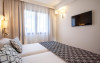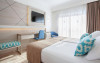 Oaspeții se pot bucura de centrul spa modern cu piscină interioară incălzită, saună și zonă de relaxare. Hotelul dispune de două piscine exterioare inconjurate de terase spațioase pentru plajă, un restaurant buffet cu preparate mediteraneene și internaționale, precum și un bar la piscină.