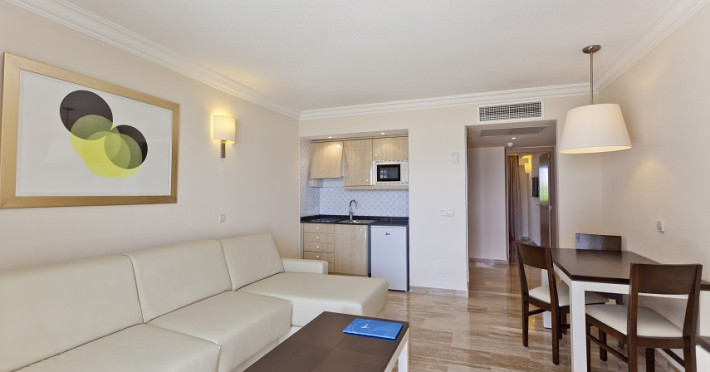 The apart hotel GRUPOTEL LOS PRINCIPES & SPA is equipped with a 24h reception, a lobby bar, Wi-Fi, an internet corner, a lift as well as parking spaces. In the outdoor area you will find a seasonally open pool, where you can rent pool towels for a fee and sun loungers and sun umbrellas are available for free. For children there is also a children's pool. Furthermore, outside you can find a sun terrace. Inside the hotel you can use a heated indoor pool. For very young guests, highchairs can be provided (for a fee). For the smallest children prams can be rented in the hotel. You can store your luggage in the hotel's storage room. To clean your clothes there is a laundry service. If necessary, you can contact the medical centre. If you want to explore the holiday region, you can use the car rental service close to the hotel. Due to its barrier-free facilities , such as barrier-free entrances and wheelchair accessible rooms, the hotel is also suitable for wheelchair users. Catering As catering services the hotel offers half board and breakfast only. Breakfast is offered from the buffet. Enjoy your lunch à la carte. Dinner is also served as a buffet. Your physical well-being is catered for by a buffet restaurant with terrace (gluten-free dishes). For dinner, guests are asked to wear appropriate clothing in the restaurant. Sports & Leisure For your fitness on holiday, a gym awaits your visit. A minigolf course offers fun for the family. Also beach volleyball is offered at the hotel. A tennis court can also be used by hotel guests. For cyclists there is a bicycle rental as well as a storage room. A sauna awaits you in the spa. Children can be looked after in the hotel`s own miniclub. For child care there is a babysitter service (extra fee) in your place of accommodation. Junior hotel guests can let off steam in the mini disco.The apart hotel GRUPOTEL LOS PRINCIPES & SPA is equipped with a 24h reception, a lobby bar, Wi-Fi, an internet corner, a lift as well as parking spaces. In the outdoor area you will find a seasonally open pool, where you can rent pool towels for a fee and sun loungers and sun umbrellas are available for free. For children there is also a children's pool. Furthermore, outside you can find a sun terrace. Inside the hotel you can use a heated indoor pool. For very young guests, highchairs can be provided (for a fee). For the smallest children prams can be rented in the hotel. You can store your luggage in the hotel's storage room. To clean your clothes there is a laundry service. If necessary, you can contact the medical centre. If you want to explore the holiday region, you can use the car rental service close to the hotel. Due to its barrier-free facilities , such as barrier-free entrances and wheelchair accessible rooms, the hotel is also suitable for wheelchair users. Catering As catering services the hotel offers half board and breakfast only. Breakfast is offered from the buffet. Enjoy your lunch à la carte. Dinner is also served as a buffet. Your physical well-being is catered for by a buffet restaurant with terrace (gluten-free dishes). For dinner, guests are asked to wear appropriate clothing in the restaurant. Sports & Leisure For your fitness on holiday, a gym awaits your visit. A minigolf course offers fun for the family. Also beach volleyball is offered at the hotel. A tennis court can also be used by hotel guests. For cyclists there is a bicycle rental as well as a storage room. A sauna awaits you in the spa. Children can be looked after in the hotel`s own miniclub. For child care there is a babysitter service (extra fee) in your place of accommodation. Junior hotel guests can let off steam in the mini disco.