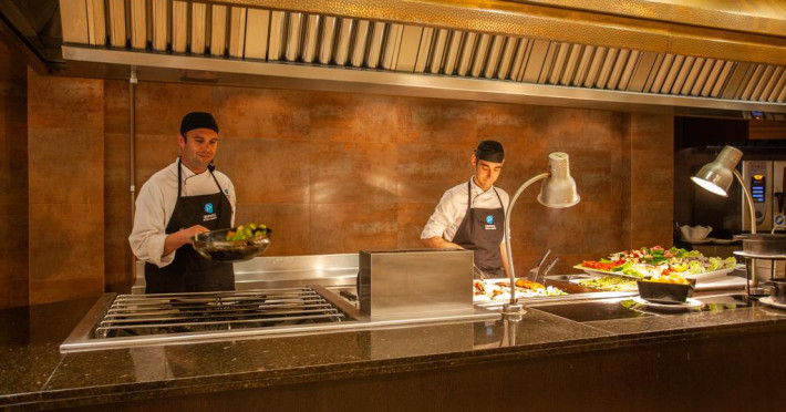 La Grupotel Orient oaspeții au la dispoziție un restaurant care servește mâncare în stil bufet. Preparate din bucătăria locală și mediteraneană așteaptă să fie degustate în fiecare zi la micul dejun, prânz și cină. Pizza este de asemenea o opțiune culinară pentru cei gurmanzi. Masa poate fi servită atât în interior, cît si în aer liber, pe terasă, în funcție de vreme. 2 baruri, dintre care unul la piscină, sunt disponibile cu o ofertă variată de băuturi răcoritoare și alcoolice.