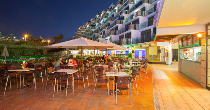 Around 500 m from a beach lies the aparthotel Grupotel Revoli. The nearest bars and restaurants can be found at a distance of around 500 m. The city centre is around 500 m away. The nearest shops you can reach within around 750 m, a supermarket is around 200 m away. Nearby there is a leisure park which offers entertainment in high season. The hotel is equipped with a 24h reception (check-in is possible around the clock), Wi-Fi, internet access, 3 lifts, a supermarket, a boutique, cash machine, showers and changing rooms, a first aid kit, parking spaces as well as a TV lounge with satellite TV. Outside there is a children's pool, where sun loungers are available for free. Furthermore, you can relax outdoors in the garden. In addition, the hotel Grupotel Revoli is video-monitored 24h a day. For your entertainment, the hotel offers a library/reading room. Kid`s chairs are available. If you want to explore the holiday region, you can use the car and motorbike rental service close to the hotel. At the reception, tickets are offered for excursions in the area. In your hotel, a lot of focus is placed on sustainability. This includes among others the hotel`s own recycling bins. Euro/Master Card and Visa are accepted as means of payment. Due to its barrier-free facilities , such as barrier-free entrances, wheelchair accessible rooms and wheelchair-accessible bathrooms, the hotel is also suitable for wheelchair users. Catering As catering services the hotel offers half board, breakfast only and self-catering. Breakfast is offered continental or from the buffet. Enjoy your lunch à la carte. Dinner is served as a set meal. Half board includes breakfast and lunch. For the meals, there are a restaurant (calorie-reduced, gluten-free and vegetarian dishes) and 2 bars, the cafeteria as well as the pool bar. The drinks menu of the hotel includes water, soft drinks, coffee and tea, beer and wine. A picnic bench can be used by guests for self-catering. Distances