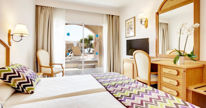 Toate unitățile de cazare de la Grupotel Santa Eulária & Spa sunt spațioase și decorate in culori vii. Fiecare dintre camerele cu aer are TV prin satelit și minibar.